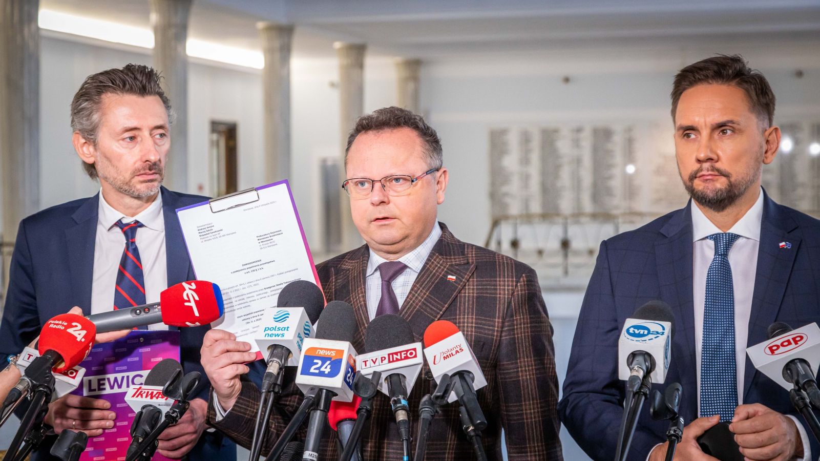 - Składamy wniosek do prokuratury o podejrzenie popełnienia przestępstwa przez pana posła Grzegorza Tomaszewskiego przestępstwa z art. 230 Kodeksu karnego; które polega na użyciu czy ...